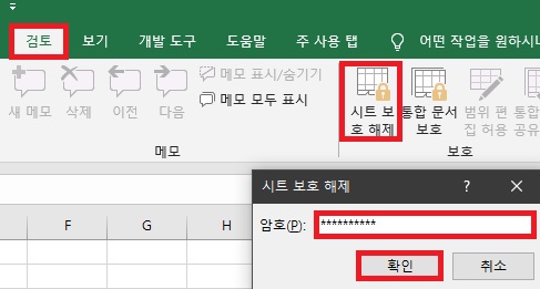 시트 보호 해제하는 방법