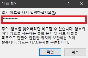 3. [암호 확인] 대화 상자가 나타나면 입력된 암호를 다시 한번 입력하고 [확인]을 클릭합니다.