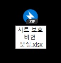10. 윈도우 탐색기 혹은 바탕화면에 있는 압축 파일의 이름에서 '.zip' 부분을 삭제하면 다시 엑셀 파일로 변환됩니다. 저는 그냥 '.zip'을 '.xlsx'로 바꿔서 엑셀 파일로 변환하였습니다.