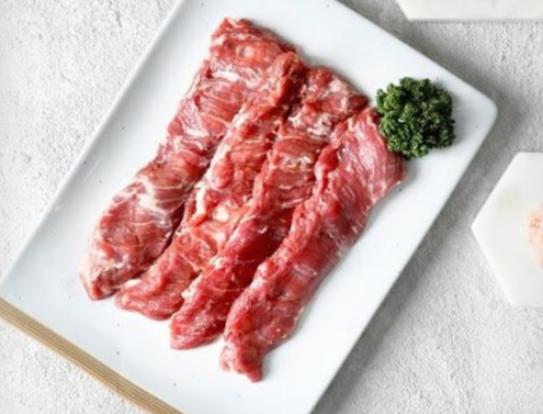 즉, 늑골(갈비뼈) 안쪽의 흉골(가슴뼈) 끝에서 허리뼈까지 갈비뼈 윗면을 가로지르는 얇고 평평한 막입니다. 이 막에 붙은 살이 바로 갈매기살인 것입니다.
