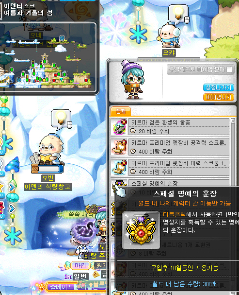 5. 이벤트 상점 적극 활용하기 : 메이플스토리는 크게는 반기마다, 짧게는 분기마다 업데이트를 합니다. 이때 빠지지 않고 등장하는 것이 바로 '코인샵'인데, 여기서도 명예의 훈장을 획득할 수 있습니다. 이벤트에 참여하여 코인을 모으고 코인샵을 둘러보면 '스페셜 명예의 훈장'을 찾을 수 있을 겁니다. 이벤트도 즐기고, 명성치도 획득할 수 있는 일석이조의 효과를 누릴 수 있습니다.